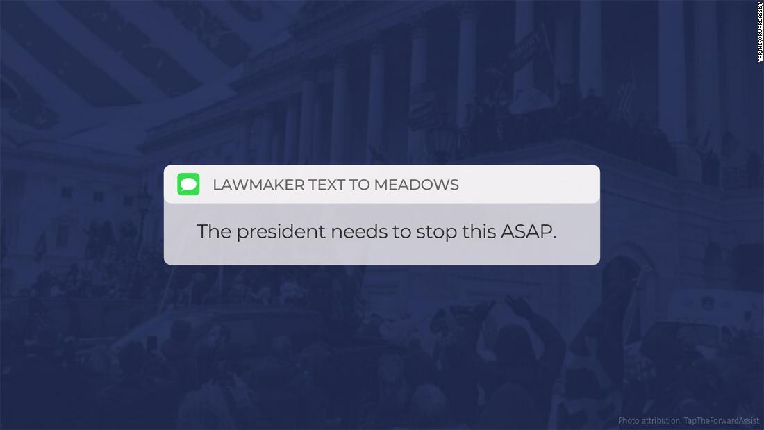 The committee pointed to texts exchanged between Meadows and lawmakers, Fox News personalities and Trump’s eldest son about the urgency for the former president to act to stop the siege.