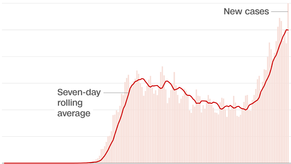 The US set a new record for the most number of cases reported in a single day — 60,021 on Tuesday.