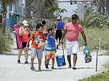 Families were seen laden down with backpacks, beach towels and coolers at the reopened Cocoa Beach