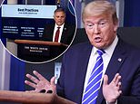 A graphic on 'best practices' called for moving activities outside, and noted that heat and humidity hurt the virus. President Donald Trump listens to Bill Bryan, science and technology advisor to the Department of Homeland Security secretary