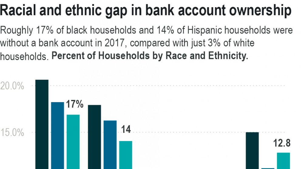 Some of those services have been criticized for being predatory and marketing to black and Hispanic communities, which are disproportionately unbanked. Roughly 17% of black households and 14% of Hispanic households were without a bank account in 2017, compared with just 3% of white households and 2.5% of Asian American households, the FDIC said.