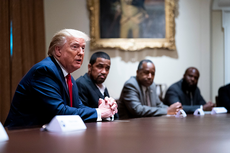 Instead, Trump said historically black colleges and universities “were treated very, very badly and I treated them very good,” and said the black community is “doing very well now.”