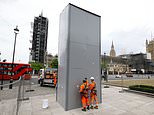 Operation Free Churchill begins: Workers arrive to remove metal box protecting statue of Sir Winston from Black Lives Matter protesters ahead of ceremony tomorrow when London will be awarded the Legion d’honneur by President Macron