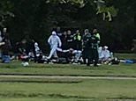 The mass stabbing led to at least two victims being taken to the Royal Berkshire Hospital following the ‘serious incident’ in Forbury Gardens in Reading’s town centre. Pictured: Paramedics and investigators in forensic suits at the scene
