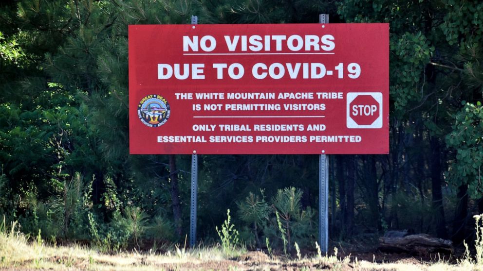 In Arizona, the White Mountain Apache Tribe said people can travel on a highway through its land, but they can’t stop along the way. Tribal police also are considering checkpoints, and a COVID-19 testing blitz is planned.