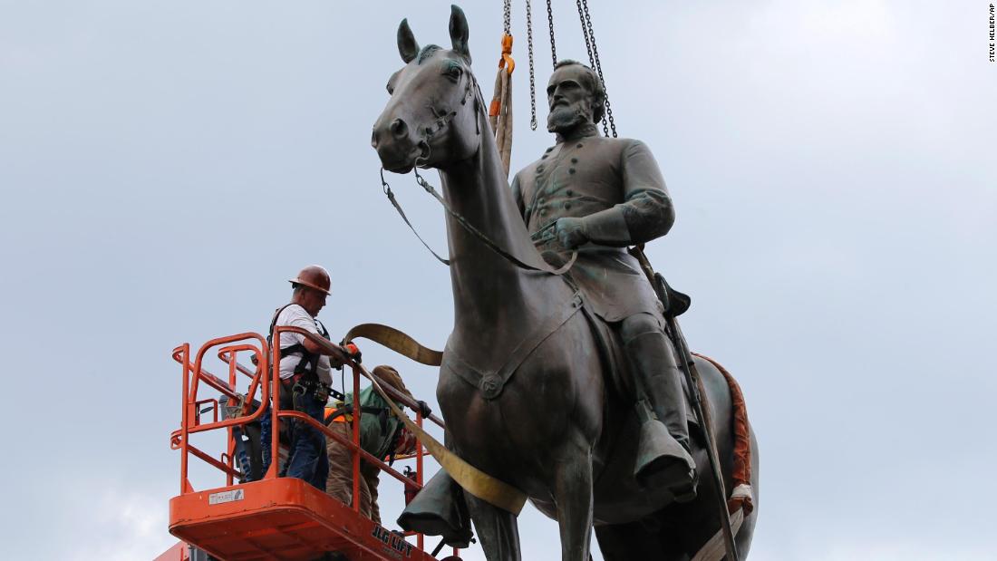 Crews spent part of Wednesday afternoon removing the Jackson statue as scores of onlookers watched the monument honoring the late slave owner who fought to preserve slavery begin to come down after standing in the city for more than 100 years. The bronze statue finally came down just before 5 p.m. ET as a thunderstorm drenched the crowd, which had erupted into cheers.