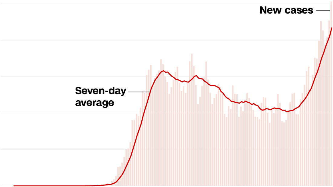 Arizona, California, North Carolina, Tennessee and Texas reported a record number of new coronavirus cases Wednesday