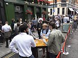 It comes the same day thousands of pubs and restaurants across the country opened their doors to customers for the first time since lockdown began on March 23. Pictured, a crowd outside The Market Porter Pub in Borough Market, London, today