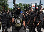 Pictured: Members of the Black Panther party armed with assault weapons arrive to Stone Mountain Park in Georgia as a controversial Confederate monument reopens on Saturday