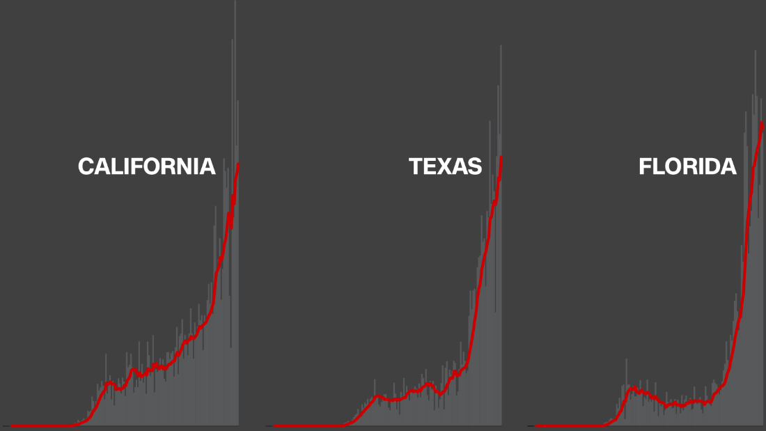 California reported 149 coronavirus-related deaths on Thursday, the highest daily total for the state, and total cases topped 300,000 on Friday. California’s positivity rate as a 14-day average is climbing and stands at 7.4% with people between the ages of 18-49 accounting for almost 60% of all cases.