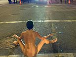 Surreal video footage from the scene shows the woman striding towards the officers, who were in heavy protective gear including gas masks and helmets, almost completely naked.