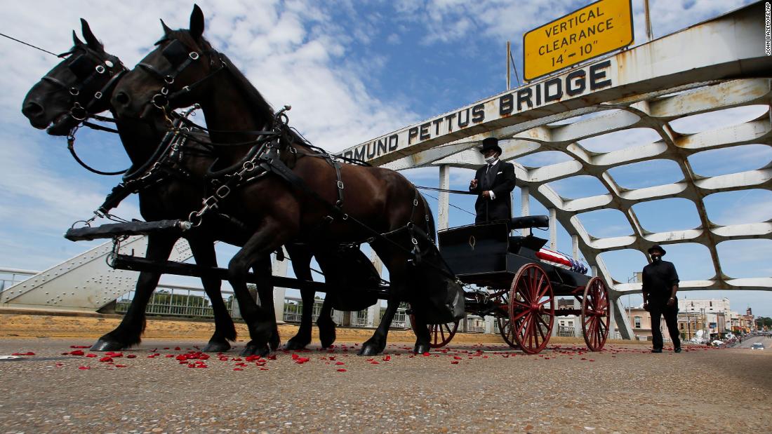 Lewis’ casket had arrived at Joint Base Andrews in Maryland earlier in the day on Monday and was brought via motorcade to the US Capitol, passing by a number of Washington, DC, landmarks along the way, including the Rev. Martin Luther King, Jr. Memorial.