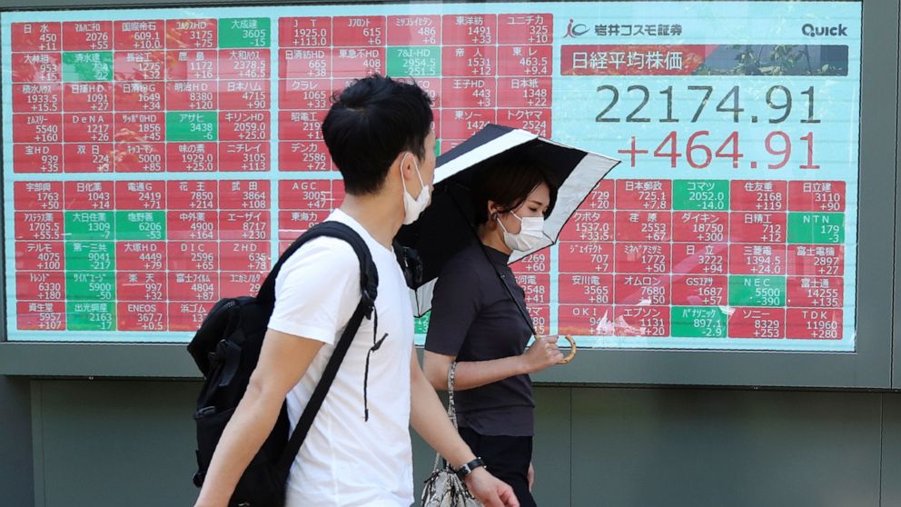 Japan’s benchmark Nikkei 225 gained 1.9% to 22,123.93. Australia’s S&P/ASX 200 edged up 0.3% to 5,946.70. South Korea’s Kospi slipped 0.1% to 2,247.00. Hong Kong’s Hang Seng dropped 0.8% to 24,400.12, while the Shanghai Composite index jumped 1.3% to 3,352.07.