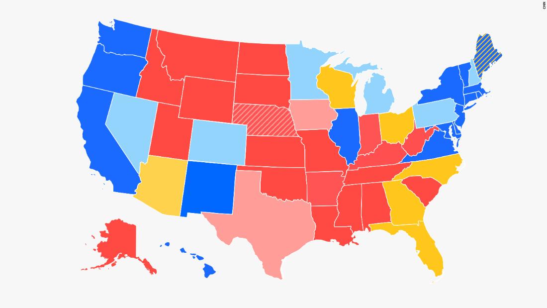 Arizona (11), Florida (29), Georgia (16), Maine 2nd Congressional District (1), North Carolina (15), Ohio (18), Wisconsin (10) (100 total)