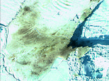 This close-up view of an emperor penguin colony from space appears as a blurry blob but is in fact thousands of birds