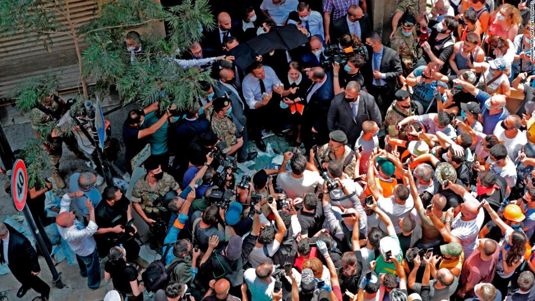 An Elysée Palace spokesperson told CNN that Macron said to Lebanese protesters: “I am here and it’s my duty to help you, as a whole population, to bring medication and food.