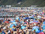 Tourists pack onto the beach at Bournemouth in Dorset today as parts of England enjoy a long heatwave