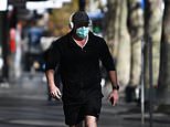 A couple in facemasks brave the rain during lockdown in Melbourne on Wednesday
