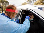 Medical staff conduct a COVID-19 test on a patient at the drive through coronavirus testing facility in Ballarat on Friday