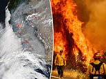 Satellite images shows blanket of smoke engulfing the whole of California as 650 wildfires continue to rage across the state killing seven and burning 1.2M acres – an area five times larger than NYC