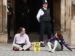 Protesters said they ‘jumped the barriers and ran past armed police to glue (themselves) on to the floor outside the House of Lords’.