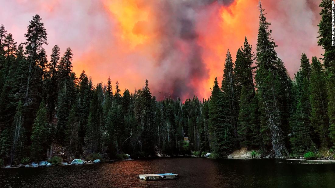 On Saturday, campers at the lake were asked to shelter in place after the Creek Fire blocked the only way out of the area. The group at the lake received the warning from a helicopter’s public address system.
