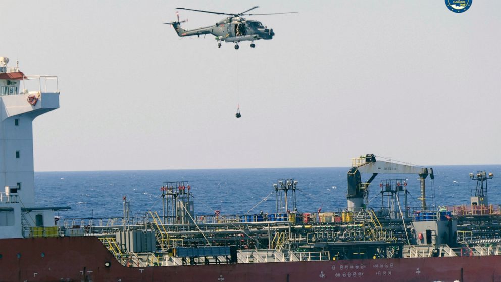 A statement from the EU mission said its inspection aboard the Marshall Islands-flagged MV Royal Diamond 7 determined the cargo was jet fuel, which it said was “likely” to be used for military purposes.