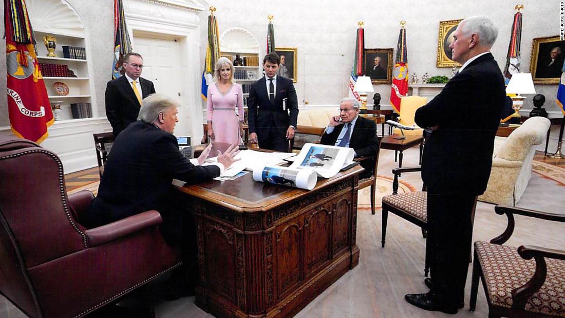 “I’ll get you something that’s sort of cool,” Trump said, picking up the phone on the Resolute Desk, asking for pictures of himself with North Korean leader Kim Jong Un at the Demilitarized Zone.