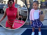 ‘Me & my mommy …..My mom was annoying me but it’s ok cause I look cute,’ the performer cheekily captioned some footage of them walking in a parking lot, from her daughter’s perspective.