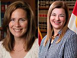 Judge Amy Coney Barrett (left) has emerged President Donald Trump’s top choice to replace Ruth Bader Ginsburg on the nation’s highest court, sources say – and Barbara Lagoa (right) is a ‘distant second’