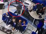 Terrifying video captured the moment a father was shot in the leg as he tried to shield his three young children from a gunman who opened fire inside a car dealership in the Bronx.