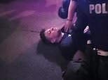 Police in Louisville detain a protester who is pinned to the sidewalk on Thursday night