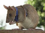 Magawa, a giant African pouched rat, has discovered 39 landmines and 28 items of unexploded ordnance since he was trained by a charity. He is pictured above wearing his miniature gold medal