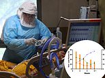 A new study from Wayne State University found that 50% of hospitalized coronavirus patients were in the intermediate viral load category compared to 25% of patients each in the high and low groups. Pictured: A nurse cares for a coronavirus COVID-19 patient in the ICU at Regional Medical Center in San Jose, California, May 21