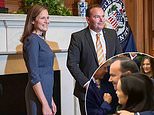 Close aide and counselor to the president Hope Hicks appears to have been pictured standing among a crowd of staff and supporters in the back.