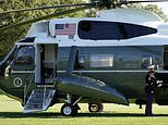 Aides in their public comments Friday described the president as ‘barking out’ orders and maintaining a steady hand on the ship of state – although it was not until his Marine One departure that the nation was set to get a glimpse of him.