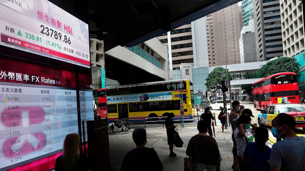 NEW YORK — Shares advanced in on Tuesday Asia after hopes for economic aid from Washington helped Wall Street recover its losses from the initial shock of learning President Donald Trump had tested positive for the coronavirus.