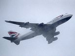 A British Airways Boeing 747 does a flypast over London Heathrow Airport on its final flight this morning