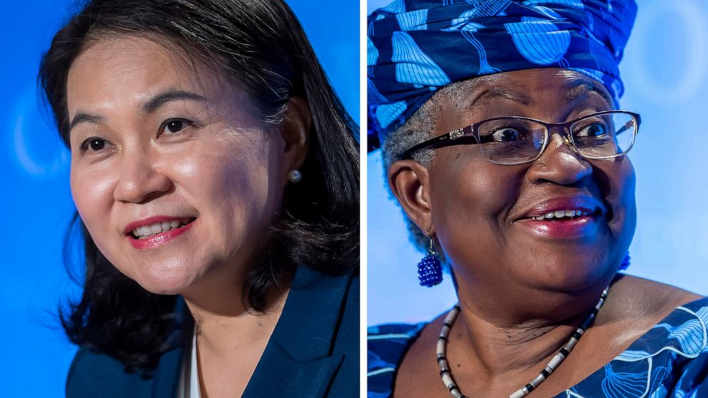 The World Trade Organization says South Korea’s trade minister and a Harvard-trained former Nigerian finance minister have qualified as the two finalists to become the next director-general of the Geneva-based trade body