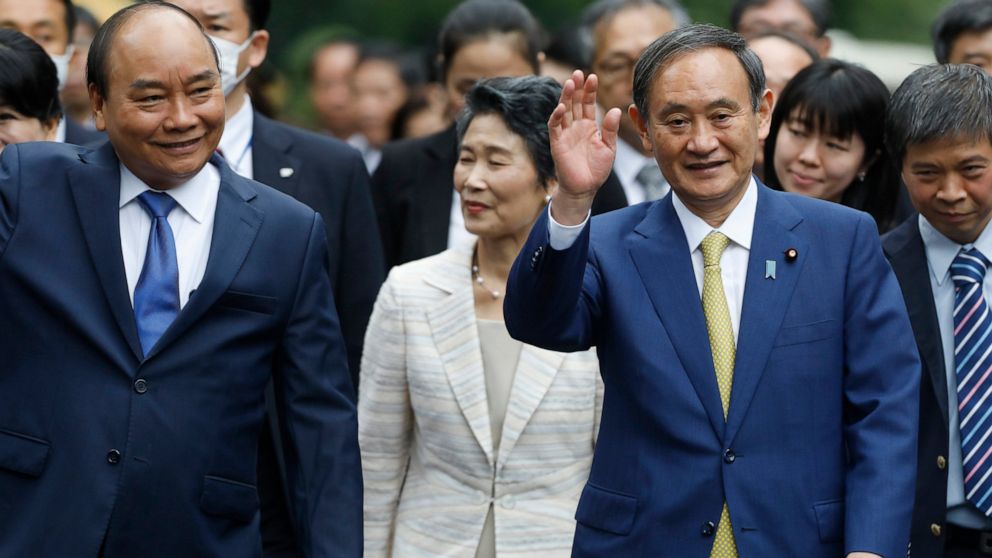 Suga arrived in Hanoi late Sunday on the first stop of a four-day visit to Vietnam and Indonesia that he says is key to pursuing the “free and open Indo-Pacific” vision for multilateral economic and security cooperation to counter China’s growing power and protect sea lanes in disputed areas of the South China Sea.