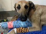 Heartless dog owner leaves lurcher called Steve tied to lamppost with broken leg