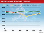 Billy Gazard, from the ONS centre for crime and justice, said the drop in crime levels were ‘mainly driven by changes in society after coronavirus lockdown restrictions were put in place.’