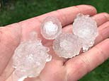 Large golf ball-sized hailstones have pelted parts of England today, as 60mph sweep heavy showers across the South and weather experts warn of up to six inches of rain over the next 36 hours.