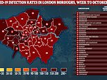 Rates of positive tests in London show some boroughs have comparable numbers of infections per person than the national average – 230 positive tests per 100,000 people in the week ending October 23 – while others have fewer than half as many.