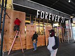 SOHO: Forever 21 in Soho on Monday had ‘we’re open!’ signs plastered across the plywood boards to still try to attract customers