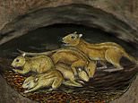 Cuddling may date back further than we thought, as scientists have unearthed the remains of a 75.5 million-year-old burrow containing the fossils of snuggling rodents. Pictured, an artist’s impression of a social group of Filikomys primaevus nesting in their shared burrow