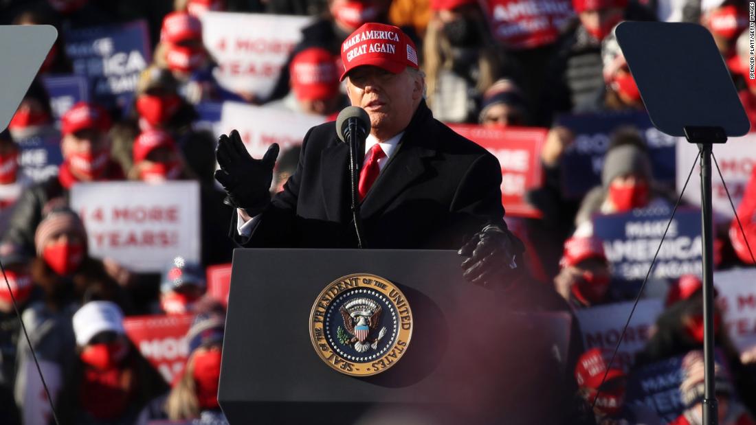 Trump traveled through North Carolina, Michigan, Pennsylvania and Wisconsin. He held his penultimate rally in Kenosha in the Badger State, a city that was rocked by protests after the shooting of Jacob Blake in August by police. Trump renewed his culture war rhetoric and hardline claims he would restore law and order.