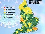 At the other end of the scale, the data revealed some areas were still seeing rises in infections: And the biggest rise in infections was registered in Medway, Kent, where infections surged by 55 per cent from 88.31 to 136.42 per 100,000.