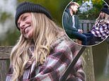 Zara wrapped up in a cosy checked jacket as she and Sam at either ends of a park bench in scenes that will air in the MIC finale later this year.