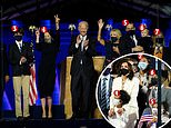 America meets the future first and second families: Five of Biden’s grandkids and Kamala’s two step-children and niece join them on stage for their victory speeches in front of millions of viewers
